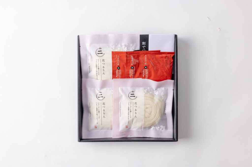 花つるりん6食・うどんつゆ6個・はぜ出汁3個・赤乃七味1個・黒乃七味1個