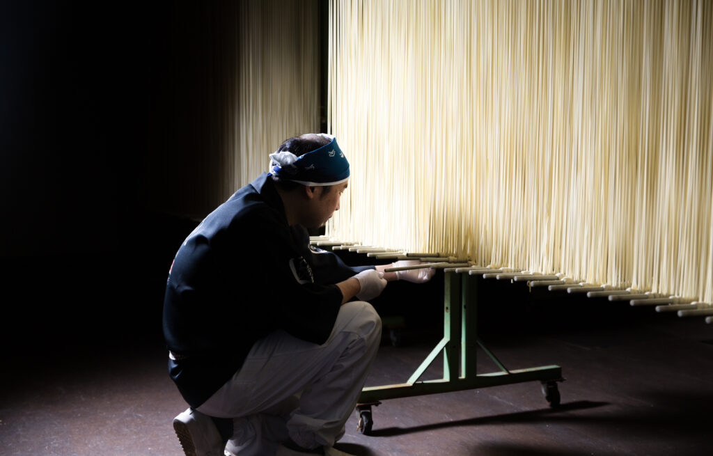 自然の中で作業をするため、気温、天候、湿度がもっとも安定し、製麺に適した冬にしか造ることができなかったのです。